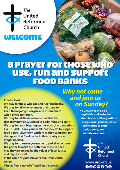 A free poster for you to place in rooms used by those who use, run and support food banks, aimed at connecting volunteers and users of food banks with the church with a dedicated prayer and an invitation to Sunday worship.