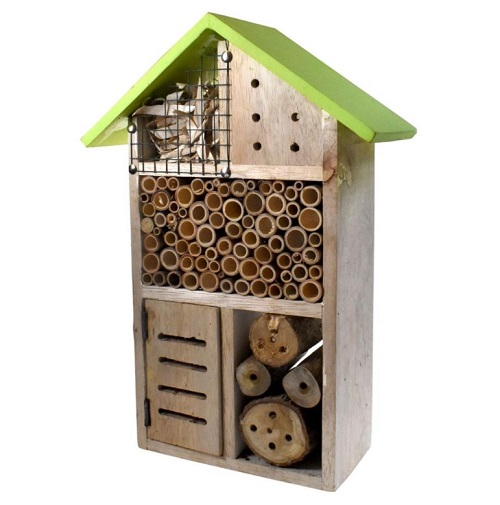 A free standing bee and bug house made from albesia wood and bamboo. Designed to provide nest cells for solitary bees of which there are 240 species in the UK. Species such as the red mason bees and leafcutter bees nest in tubes or tunnels. You can encourage these busy pollinators by providing artificial nest sites such as this house.