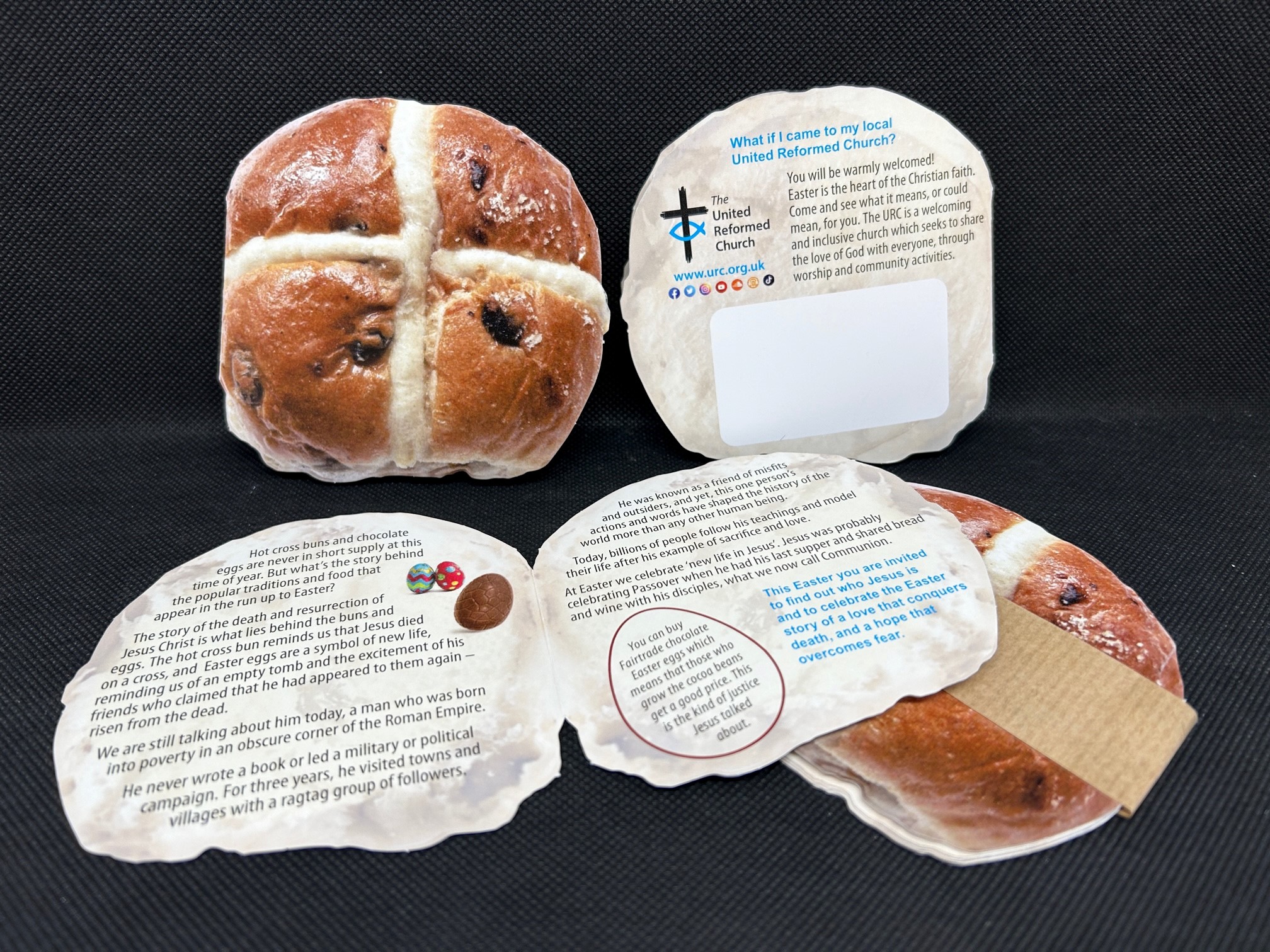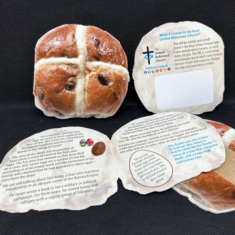 Hot cross buns seem to be in the shops all year round. But what do they mean and how is it related to Easter? This new, hot cross bun-shaped leaflet, explains the relationship between the buns and chocolate eggs to Easter, with an invitation to worship at your local URC.
