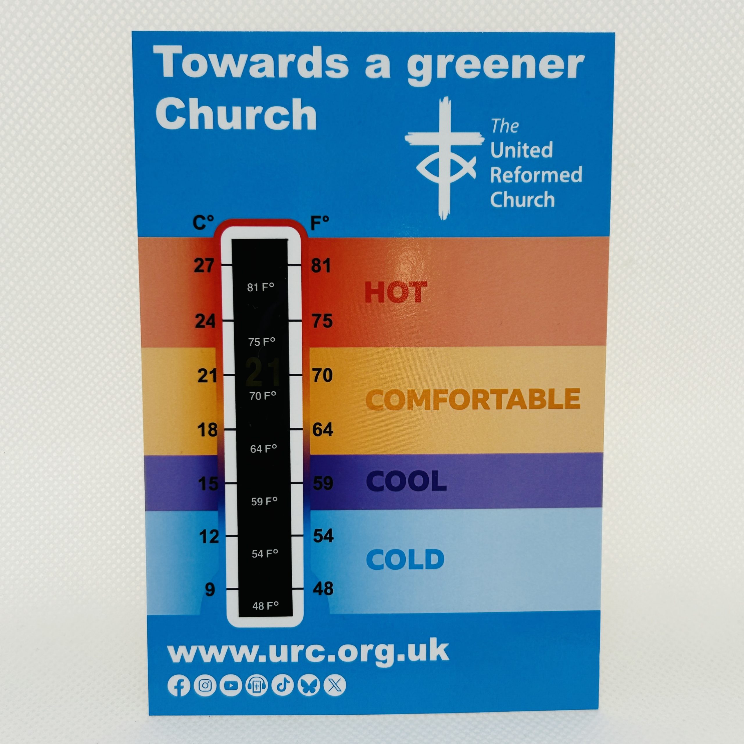 An A6 temperature gauge card for home or church use, to show the temperature in rooms. Comes with a sticker and magnetic strip on the reverse to attach to walls, your fridge or other metallic surfaces.